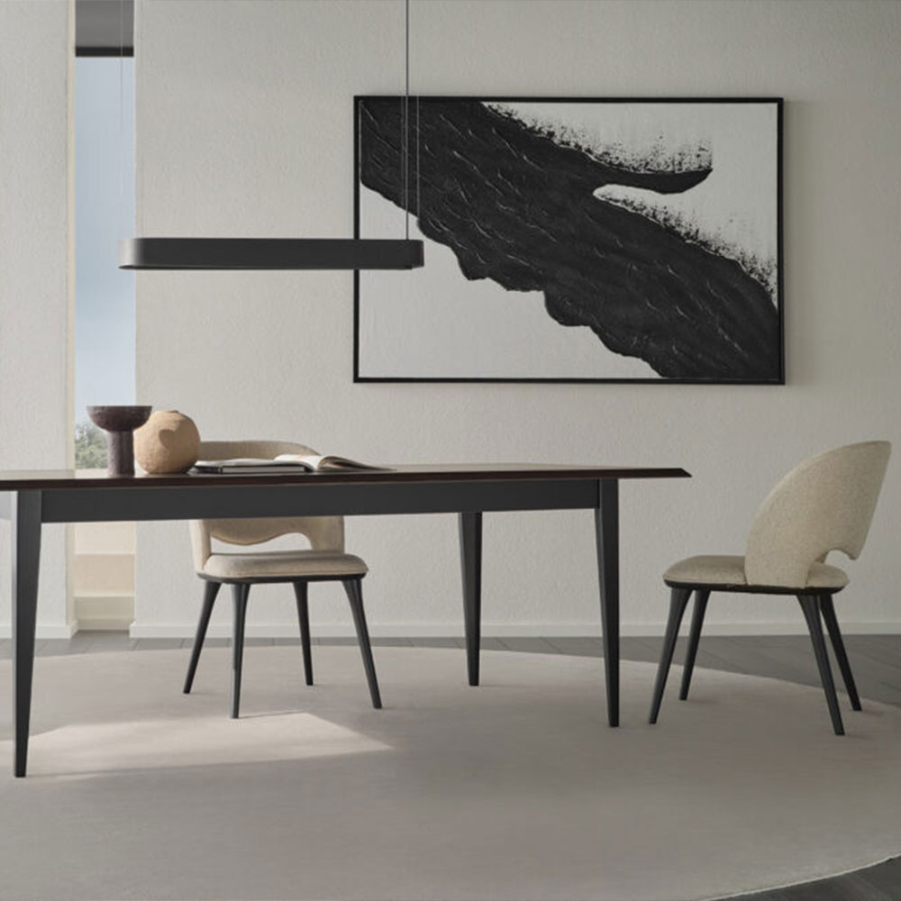 Adding a stylish touch to modern living spaces with its contemporary design, PARMA EXTENDABLE TABLE presents a powerful design thanks to its fine details. Offering a visual harmony thanks to its dark walnut and black color combination, PARMA EXTENDABLE TABLE completes its contemporary aesthetics with its elegant rectangular form and wooden leg application.