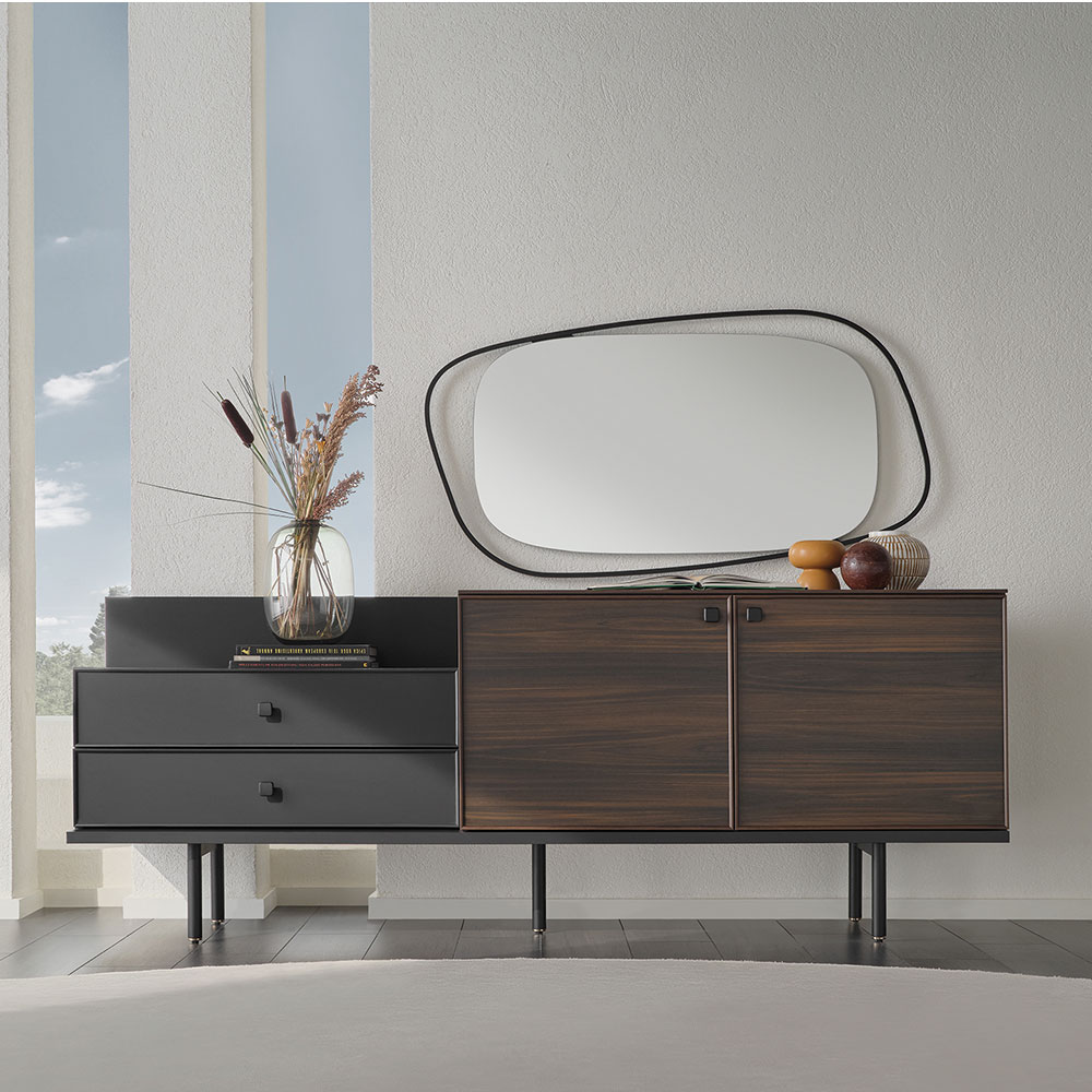 Designed with a unique combination of dark walnut and matte black, PARMA SIDEBOARD takes its place in the most modern living spaces! Offering a look suitable for every space with its contemporary design, PARMA SIDEBOARD promises long-term use with its strong design. PARMA SIDEBOARD reveals its unique design with the details on its feet, doors and drawers.