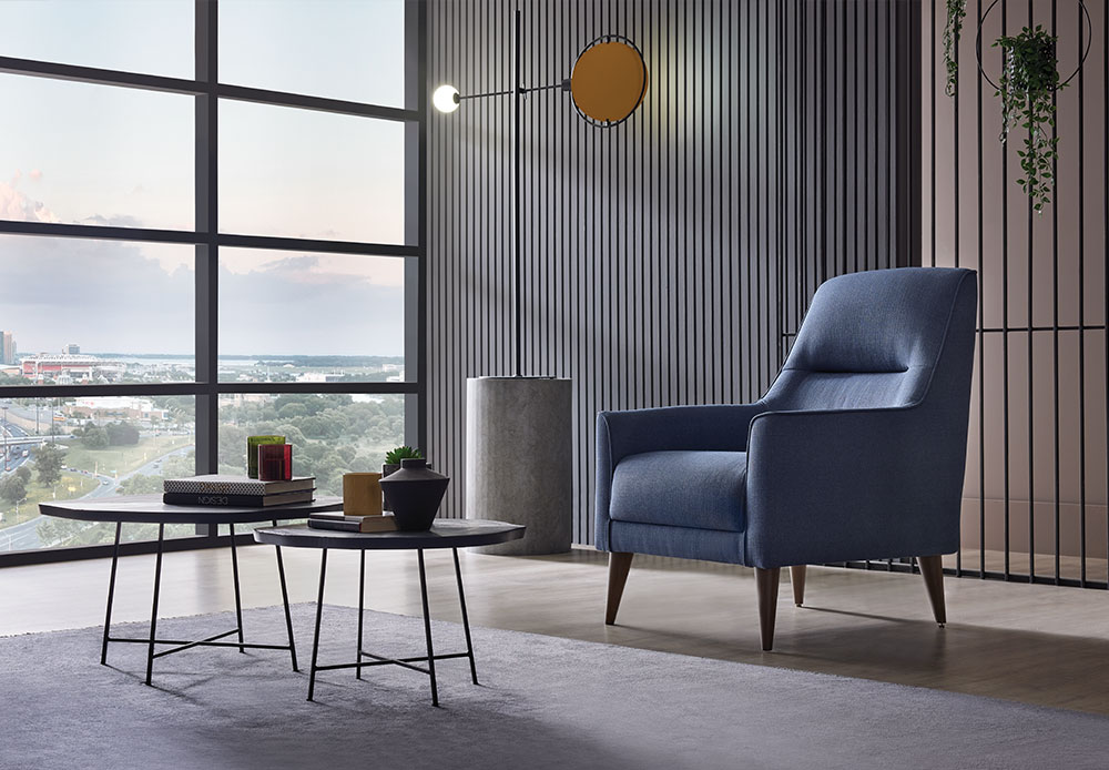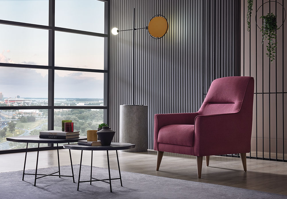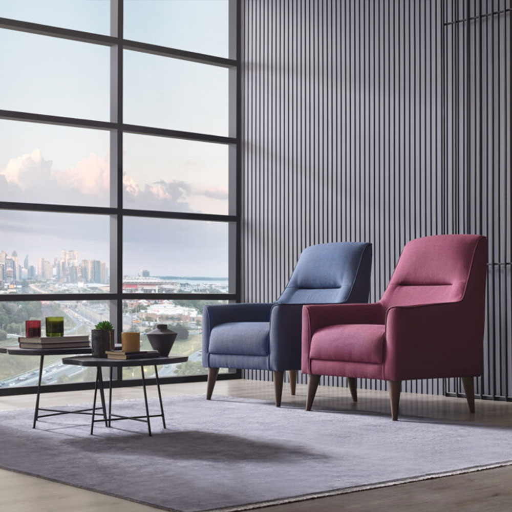 Reflecting the simple aesthetics of modern lines, Alto Armchair brings together aesthetics and comfort with its special stitching application on the back and sponge structure that provides extra comfort. It completes its high leg design, which makes cleaning easier, with two different color alternatives: anthracite and walnut.