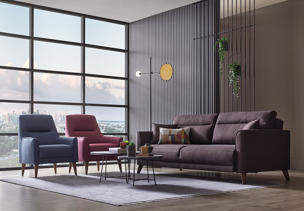 ALTO LIVING ROOM, which reflects the lean aesthetics of contemporary lines, stands out with its ergonomic design. It combines aesthetic and comfort with special stitching application and foam structure which offers extra comfort on the backrest. It makes daily life easier by providing the advantage of versatile use with its three seater sofa module that has bed mechanism. It completes its high leg design which makes cleaning easier with two colour alternatives as anthracite and walnut. Alto Living Room which has a timeless design with its contemporary style brings a contemporary style in supreme comfort.
