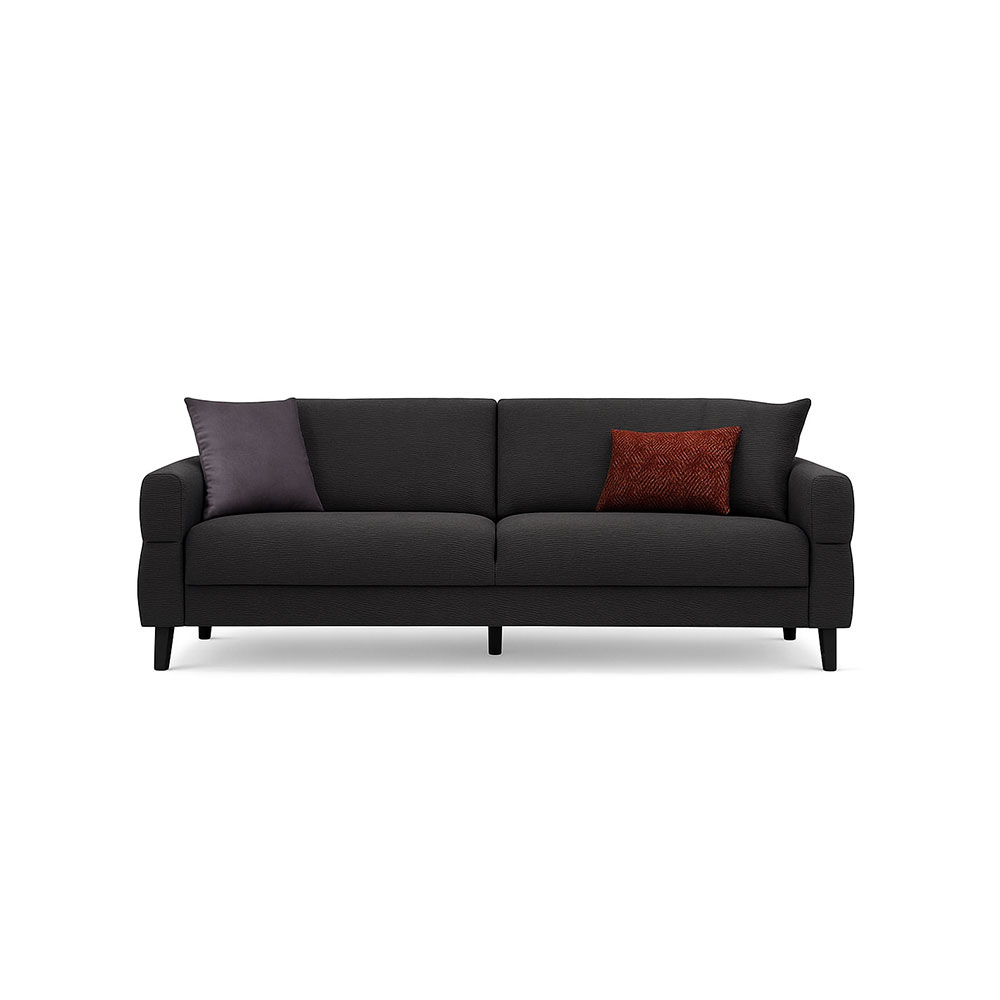 Elevate your living space with the 3-seater sofa, exclusively available online from Enza Home BC. This sofa delivers relax comfort with its sturdy wooden skeleton and metal Tolera support. Featuring three plump cushions and elegant walnut polymer feet, it's built for both style and durability. Enjoy easy setup as this sofa requires installation, ensuring a perfect fit for your home.