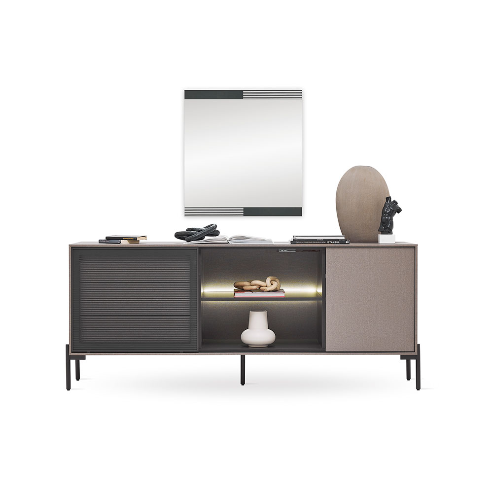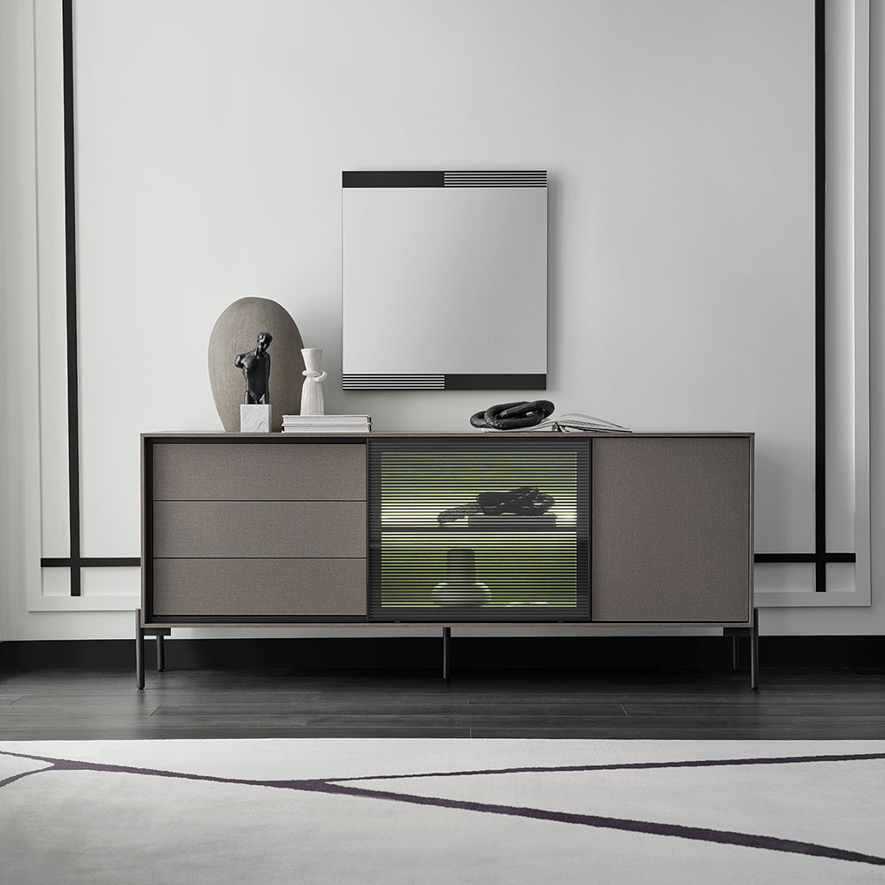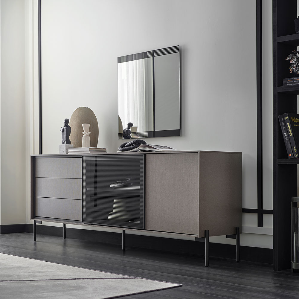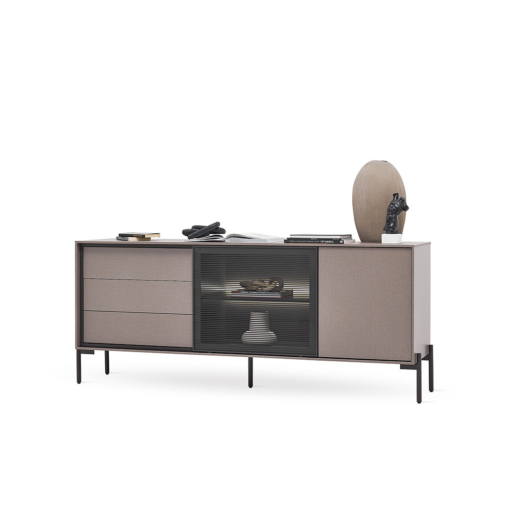 BERTA Console, which exhibits a high-level aesthetic appearance with its modern and functional design line, adds a sophisticated elegance to its modern style with its textile textured surface coating enriched with metal effects special to Enza Home. Standing out with its special design details, BERTA Console creates a contemporary effect in living spaces and brings a qualified interpretation to decoration.