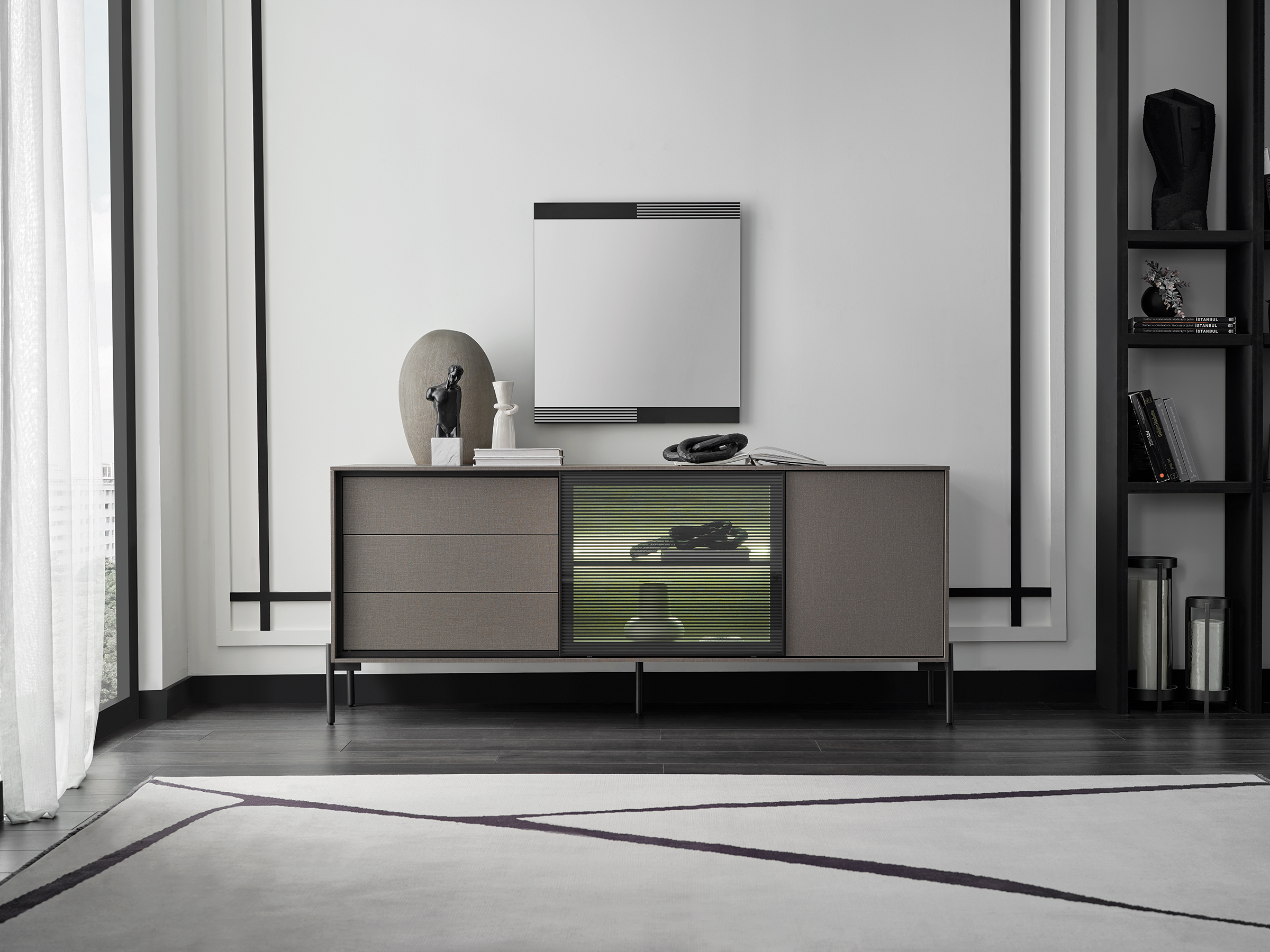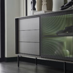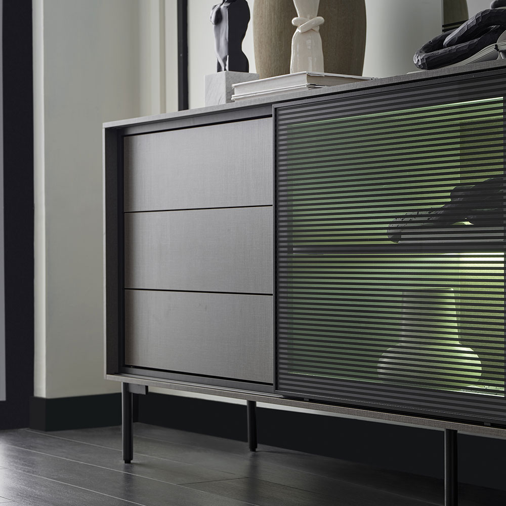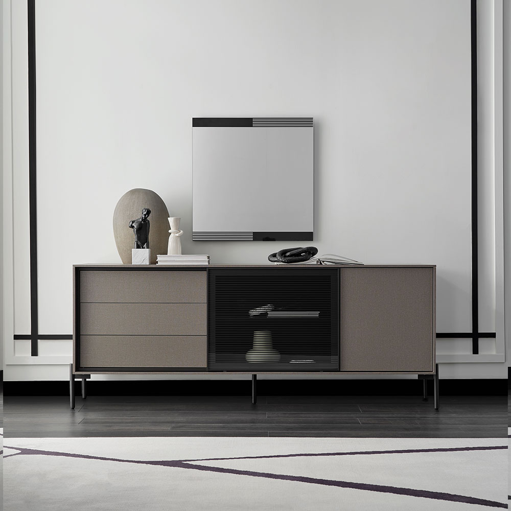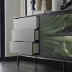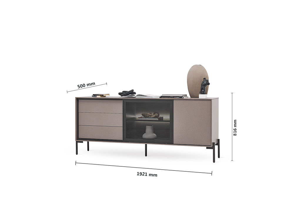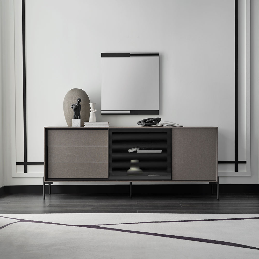 BERTA Console, which exhibits a high-level aesthetic appearance with its modern and functional design line, adds a sophisticated elegance to its modern style with its textile textured surface coating enriched with metal effects special to Enza Home. Standing out with its special design details, BERTA Console creates a contemporary effect in living spaces and brings a qualified interpretation to decoration.