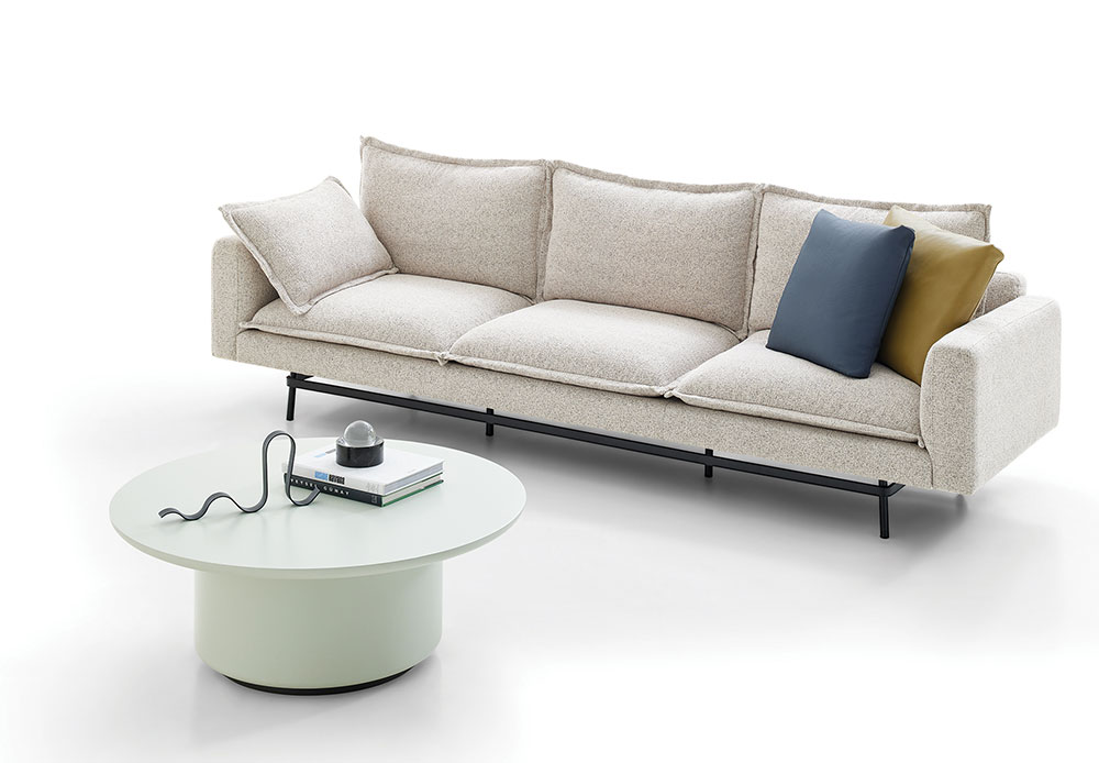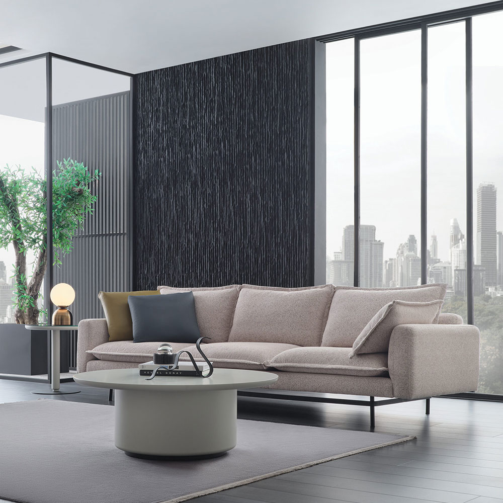 BOND STREET LIVING ROOM, which combines a Contemporary design line with high-level craftsmanship, provides maximum sitting comfort with goose down filling and multi- layered sponge technology, while also displaying a luxurious industrial design style with real leather and linen-effect fabric alternatives.