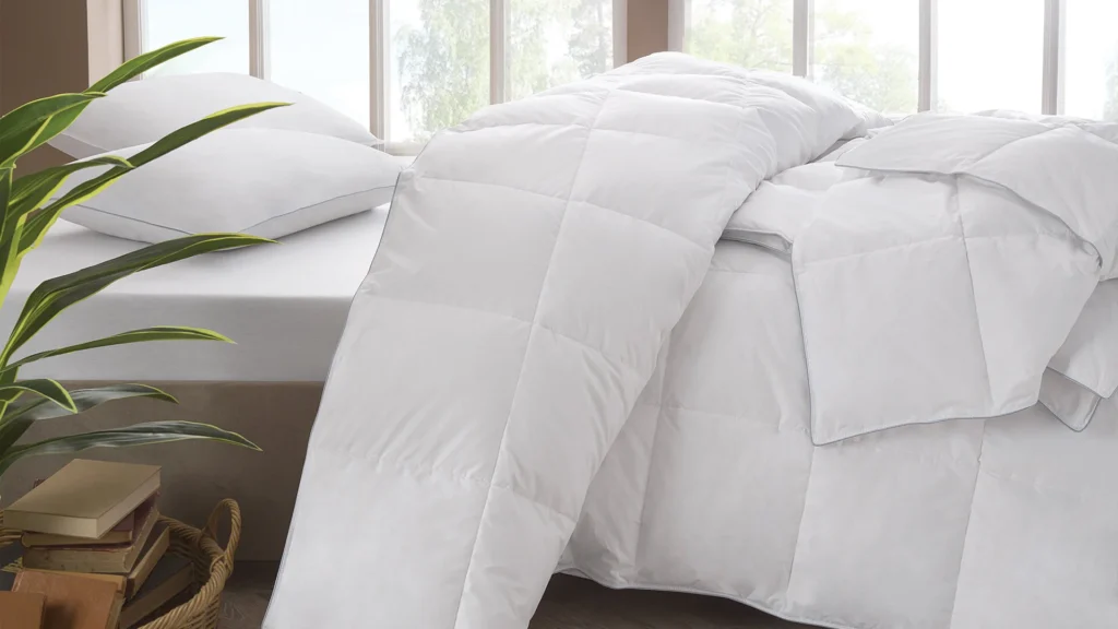 Goose down filling material provides excellent comfort and a peaceful sleeping experience thanks to its lightness and excellent insulation properties.