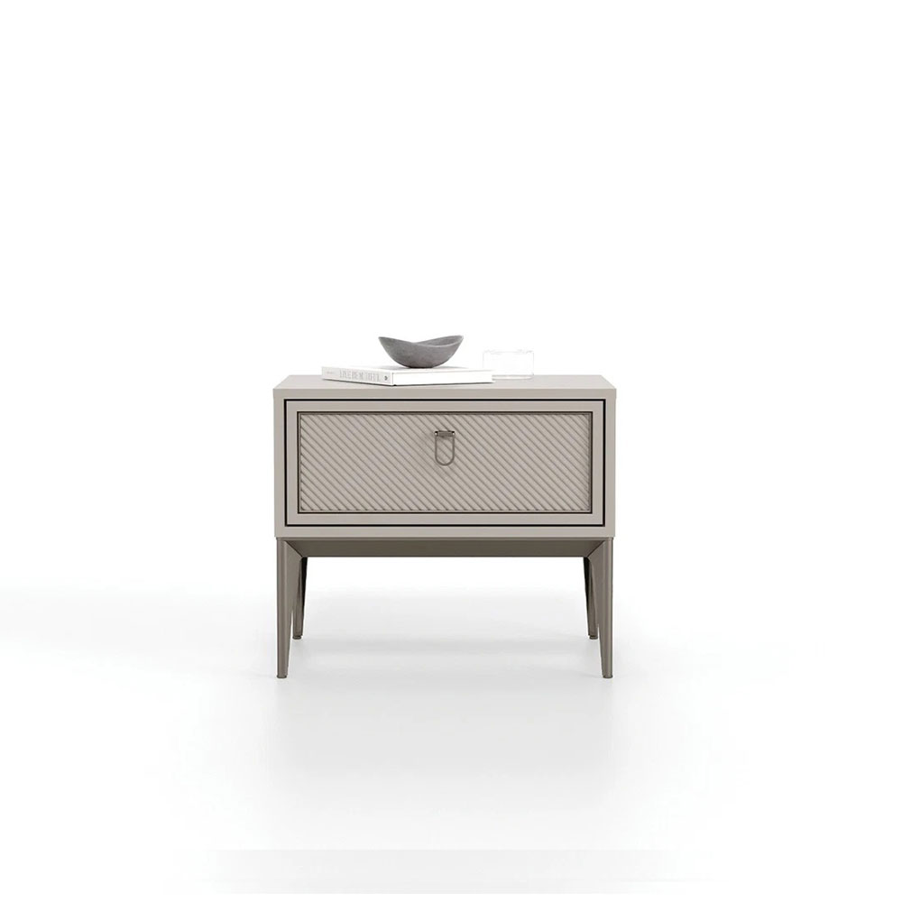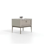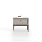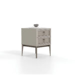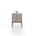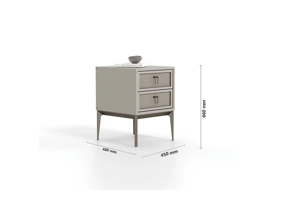 Adding a minimal touch to bedrooms with its stone color, the HERA DOUBLE DRAWER NIGHTSTAND strengthens the aesthetics with its shiny bronze handles and brushed bronze metal legs, while its 2-drawer structure highlights functionality.