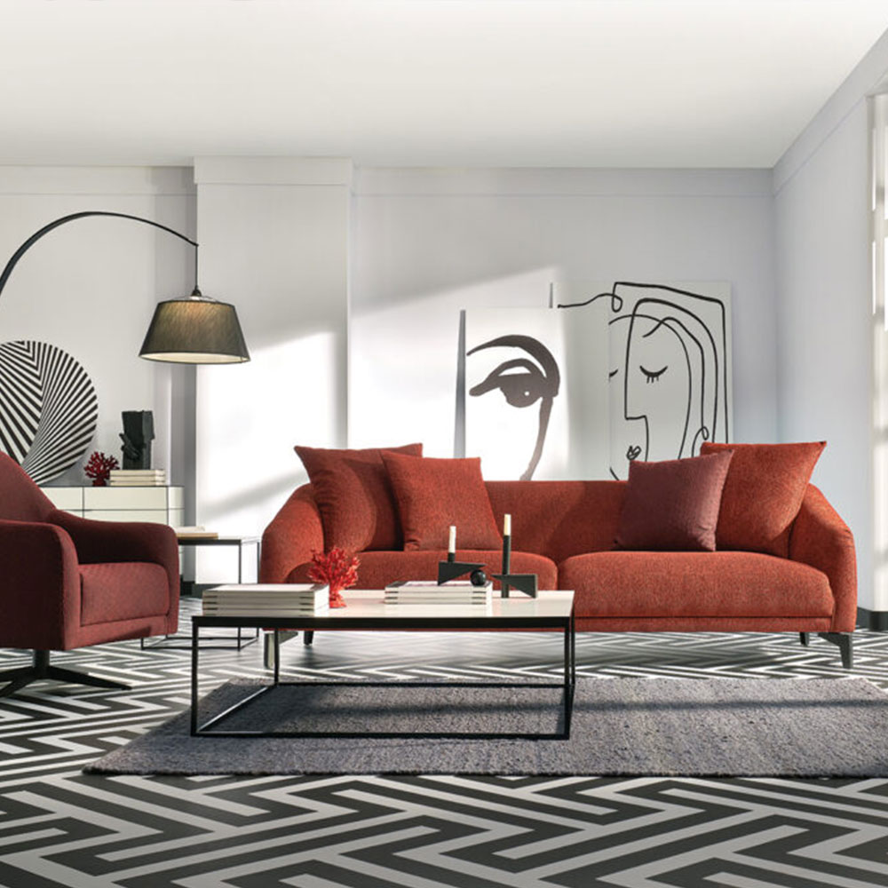 Maximizing comfort with material combinations accompanying the contemporary design, the MAISON LIVING ROOM combines aesthetics and functionality The MAISON LIVING ROOM offers a unique comfort zone with its seating area designed with multi-layer foam of different densities and pocket spring technology. It gives life to an aesthetically rich and long-lasting decoration style with the combination of quality materials exalted in details and metal legs used in sofa and armchairs.