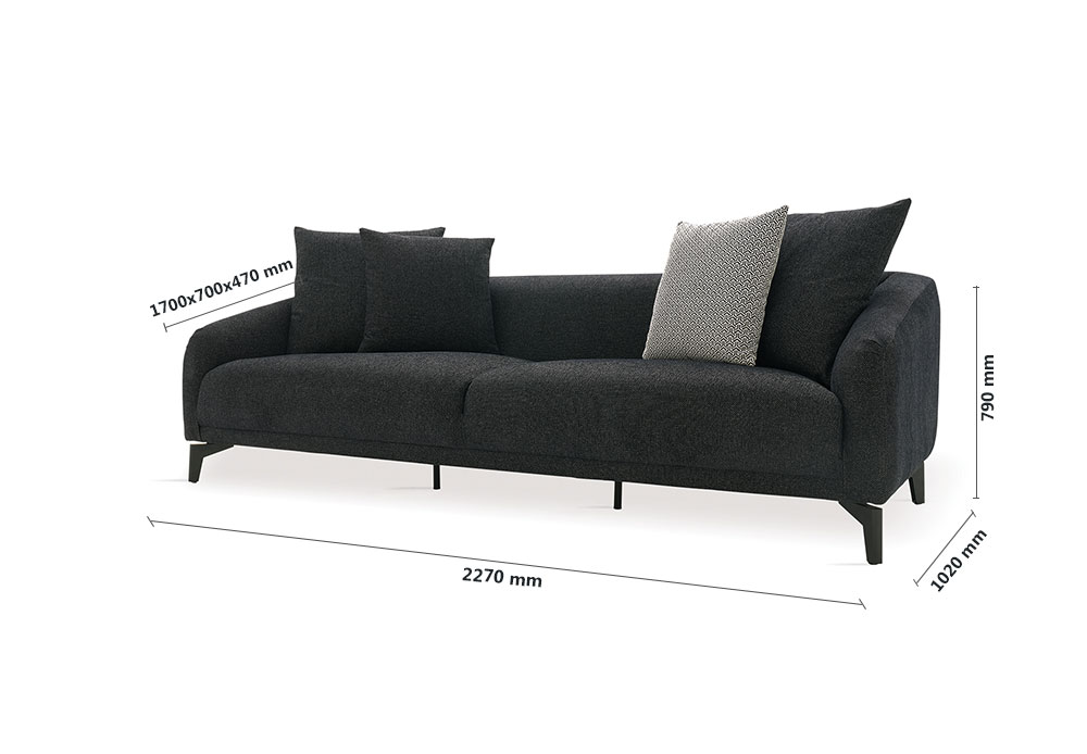 MAISON 3-SEAT SOFA, which aims for maximum comfort with material combinations accompanying the contemporary design line, brings together aesthetics and functionality. It provides high comfort with its seating area designed with multi-layered sponge of different densities and pocket spring technology. The high comfort sponge used in the back cushions carries the ergonomics of MAISON 3-SEAT SOFA to a premium level, while completing its design with goose feather-filled cushions.