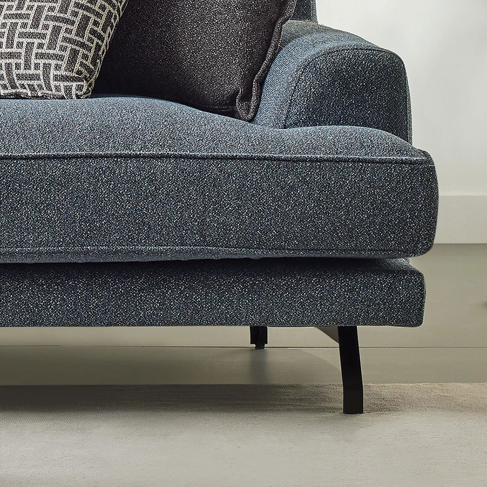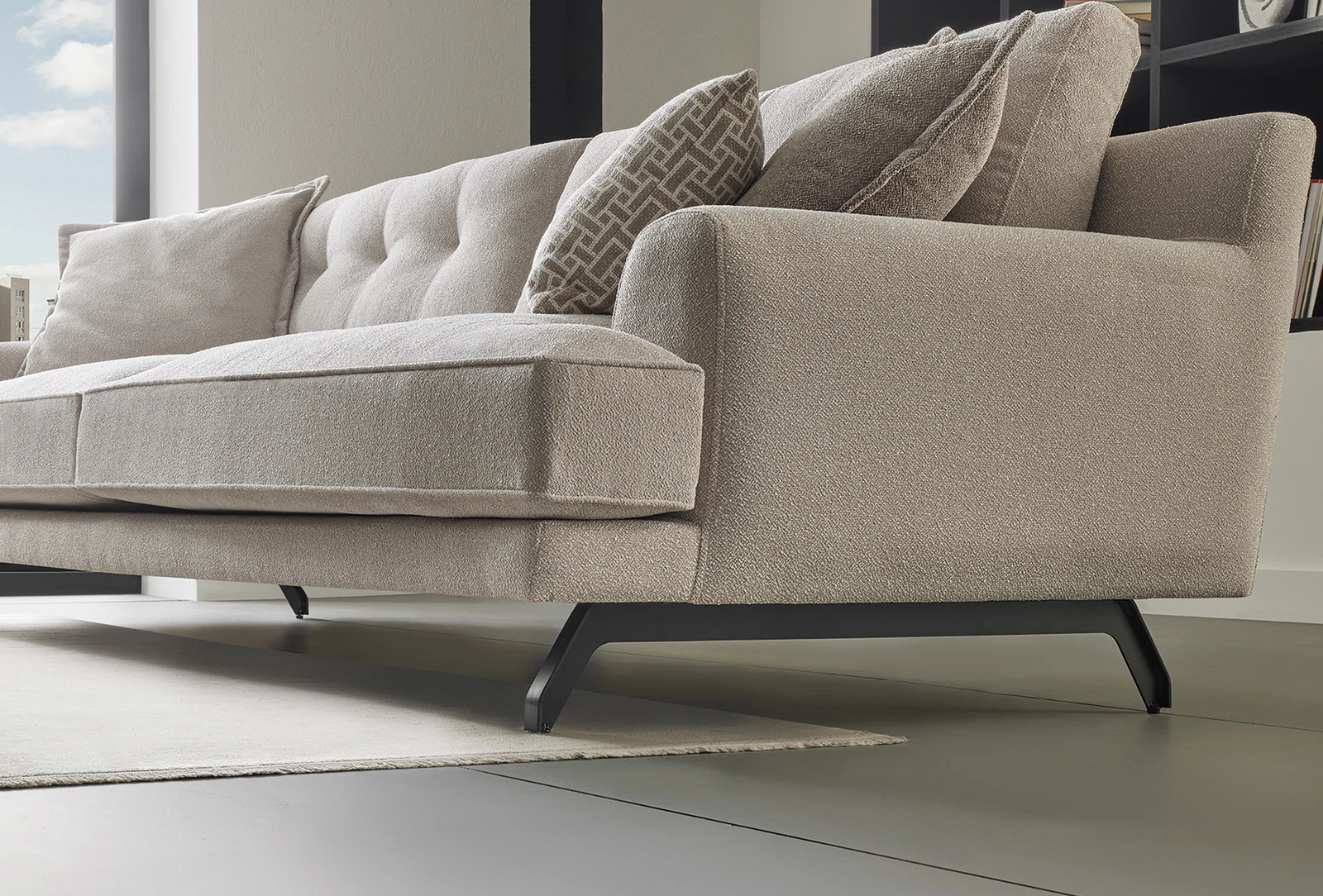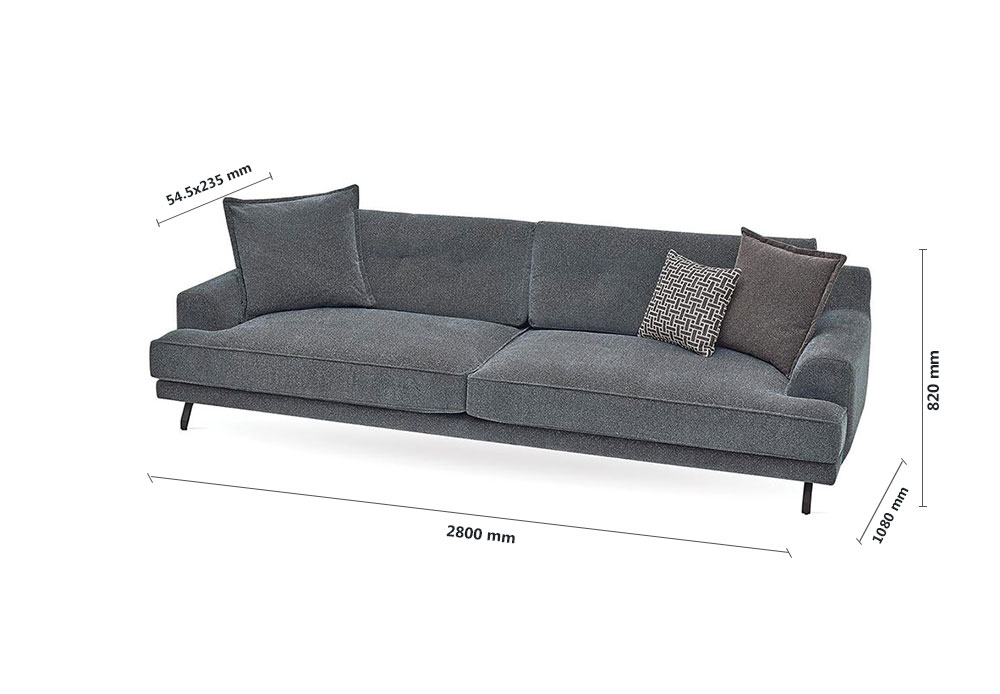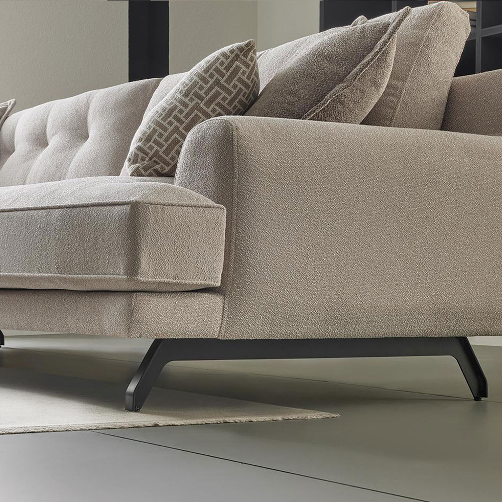 MILAN 4-SEAT SOFA, which has three cushions, two of which are flounce, stands out with the aesthetic appearance of its black metal legs. In addition, it provides ease of cleaning thanks to its high-legged structure.