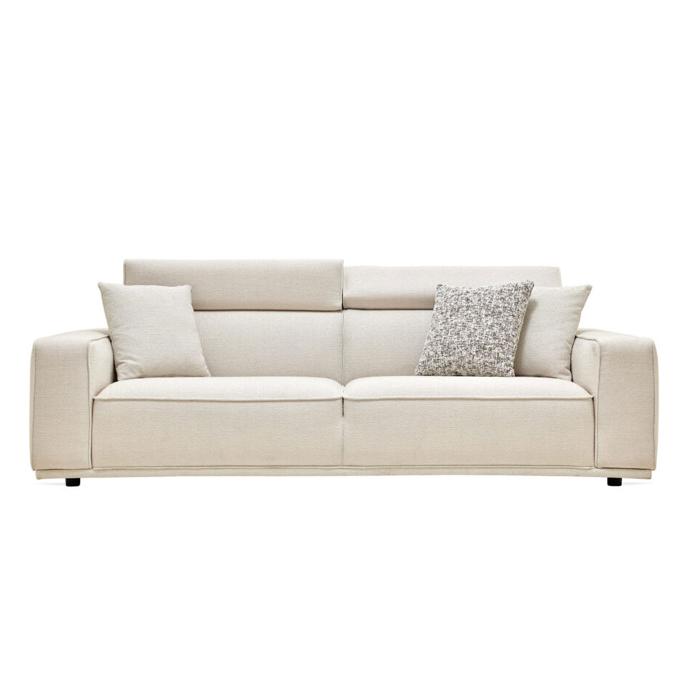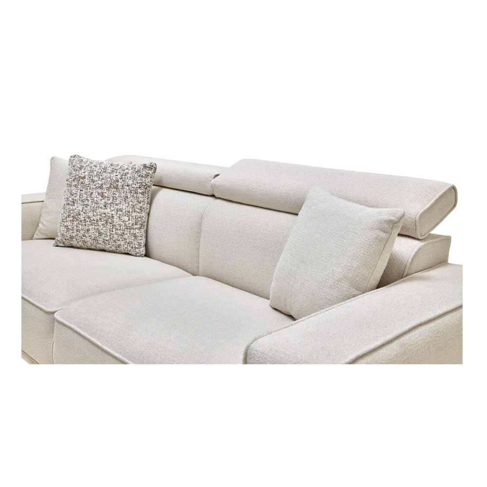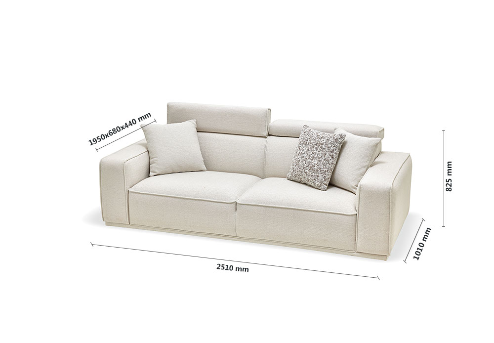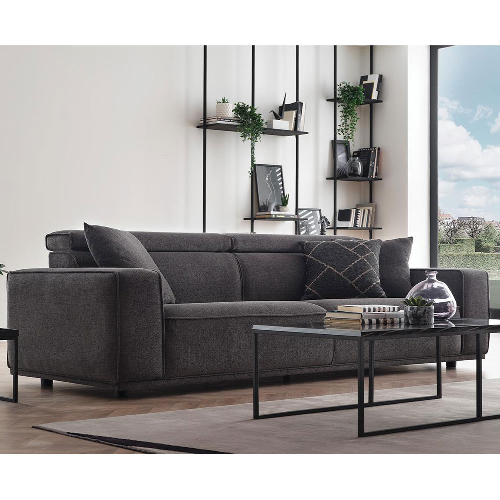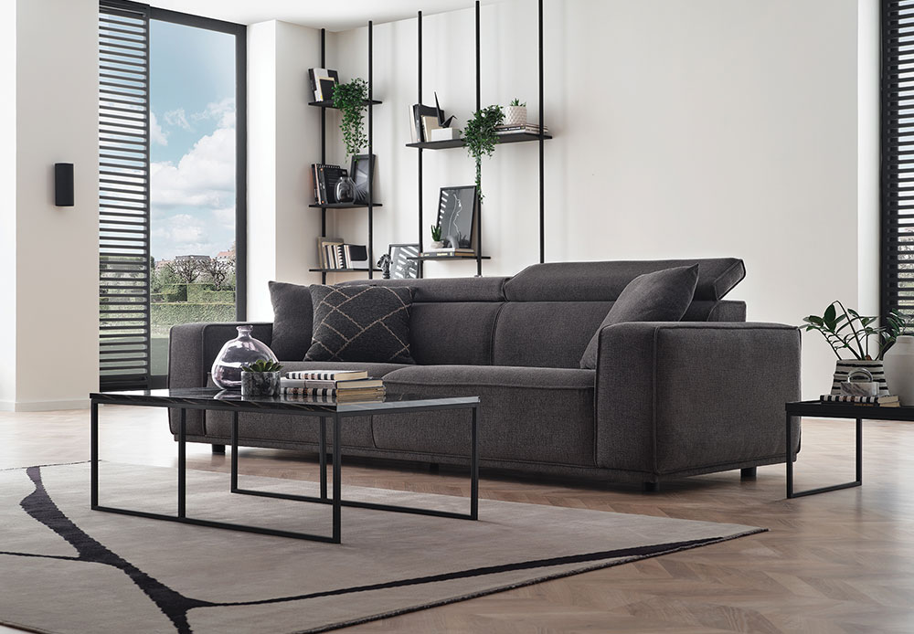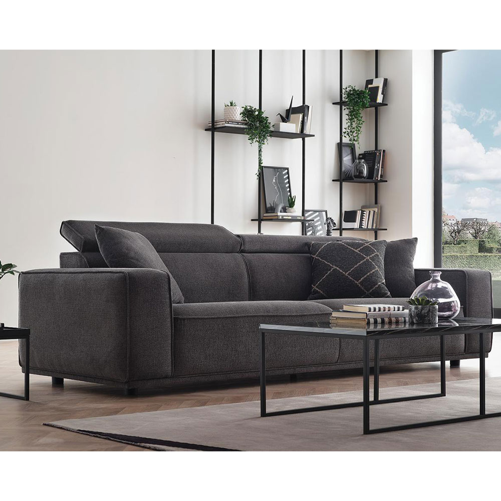 Drawing attention with its eye-catching contemporary design line, MILOS 3-SEAT SOFA offers maximum comfort with its superior ergonomic features. It stands out with its soft-textured fabric and wide arm structure, while creating a unique comfort experience with its comfortable sponge application and goose feather filling used on the back. Providing extra head and neck support with its special movable head mechanism, MILOS 3-SEAT SOFA brings a stylish example of contemporary comfort to living spaces.
