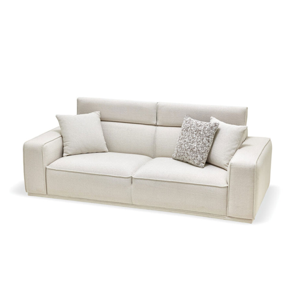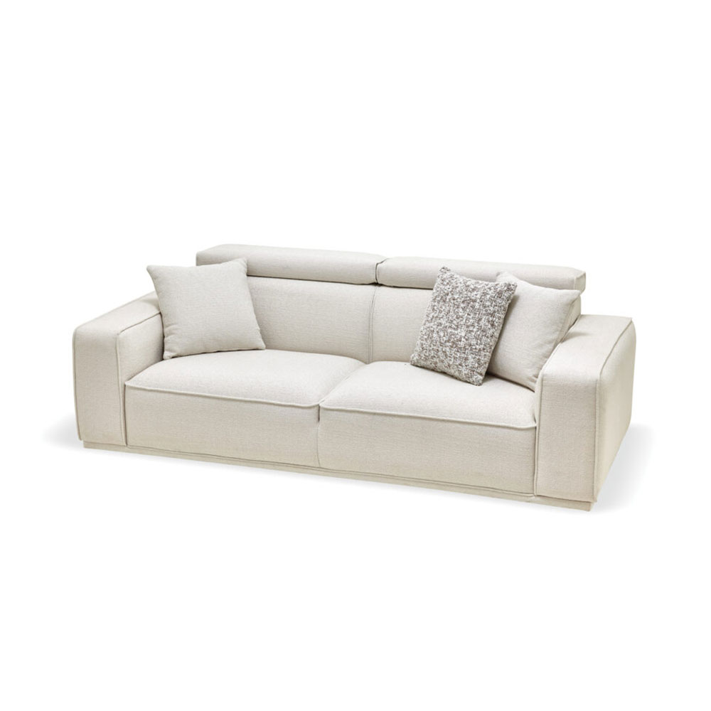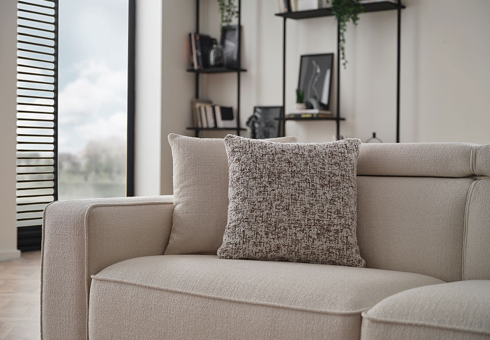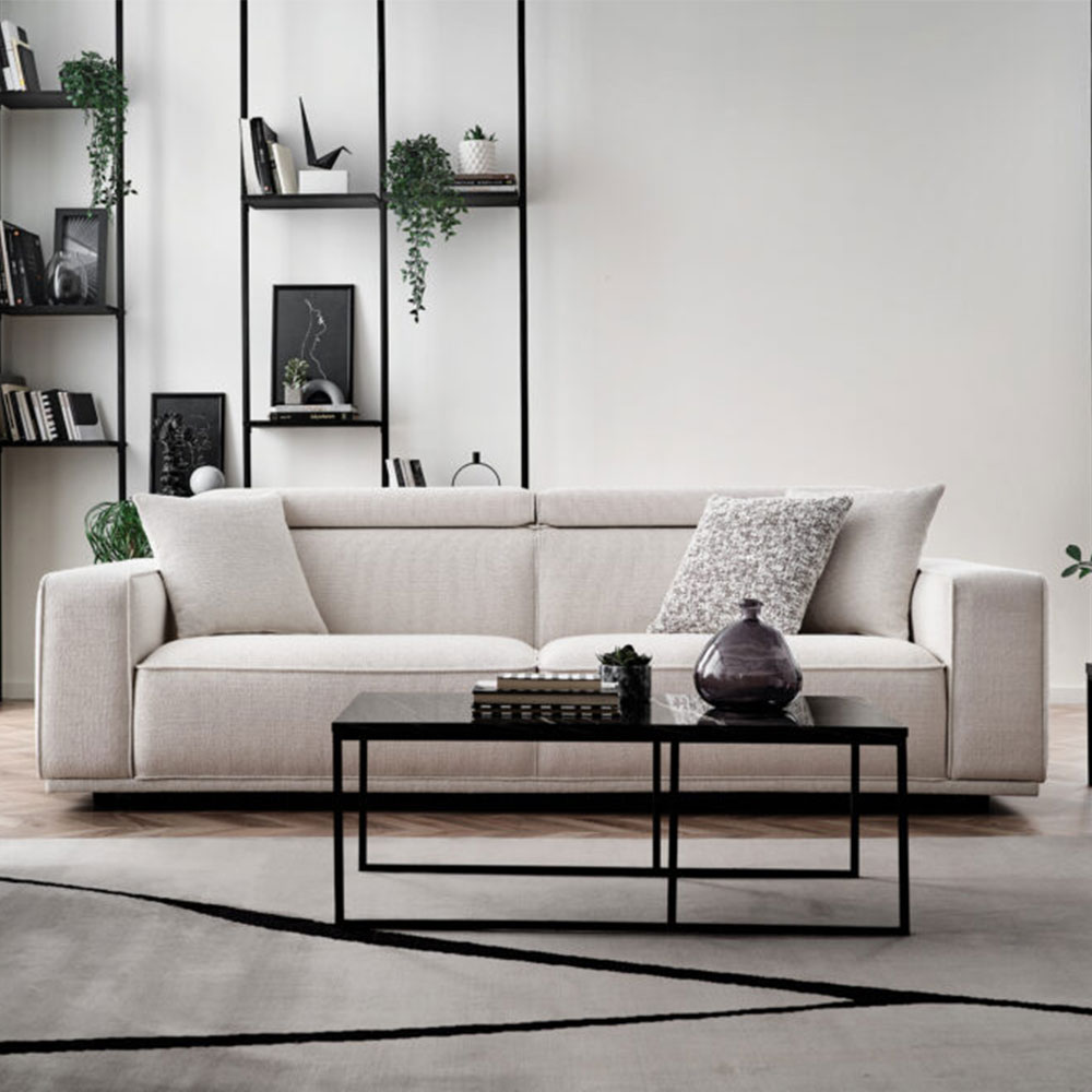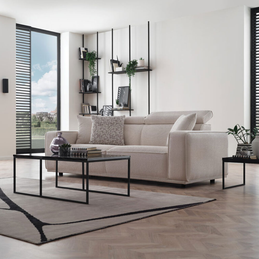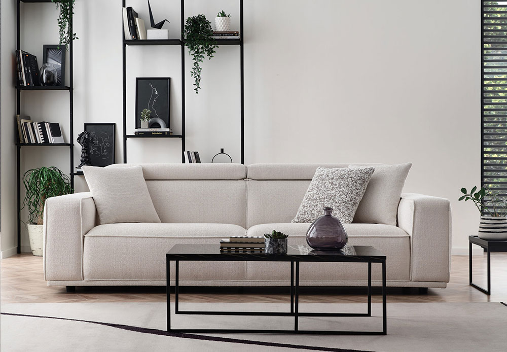 Drawing attention with its eye-catching contemporary design line, MILOS 3-SEAT SOFA offers maximum comfort with its superior ergonomic features. It stands out with its soft-textured fabric and wide arm structure, while creating a unique comfort experience with its comfortable sponge application and goose feather filling used on the back. Providing extra head and neck support with its special movable head mechanism, MILOS 3-SEAT SOFA brings a stylish example of contemporary comfort to living spaces.