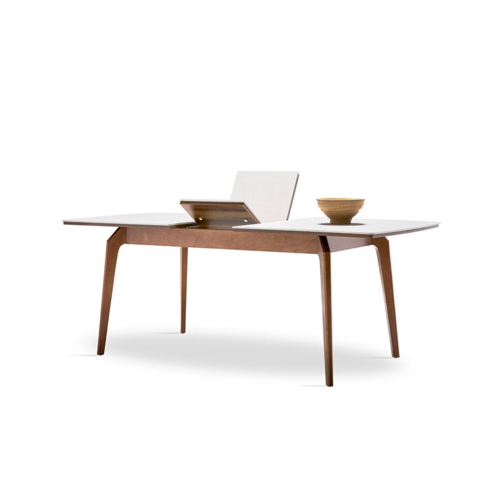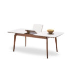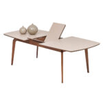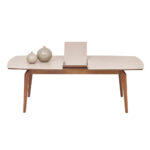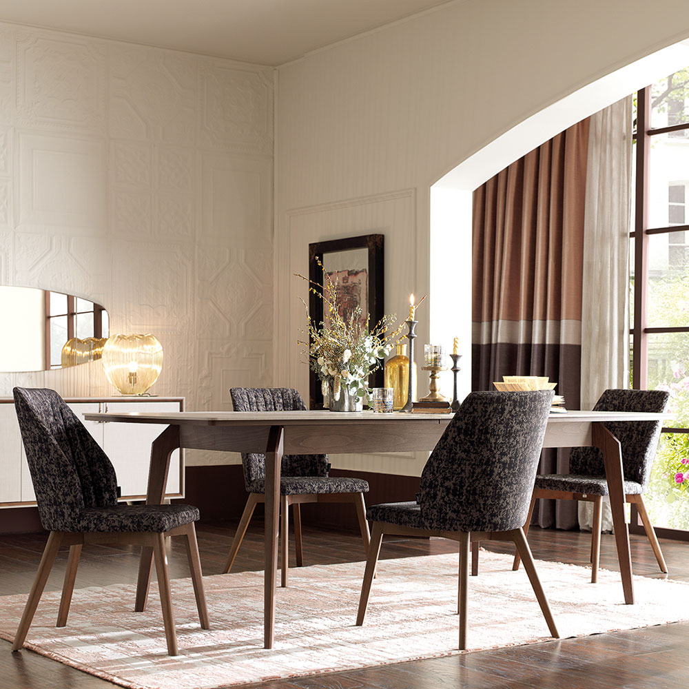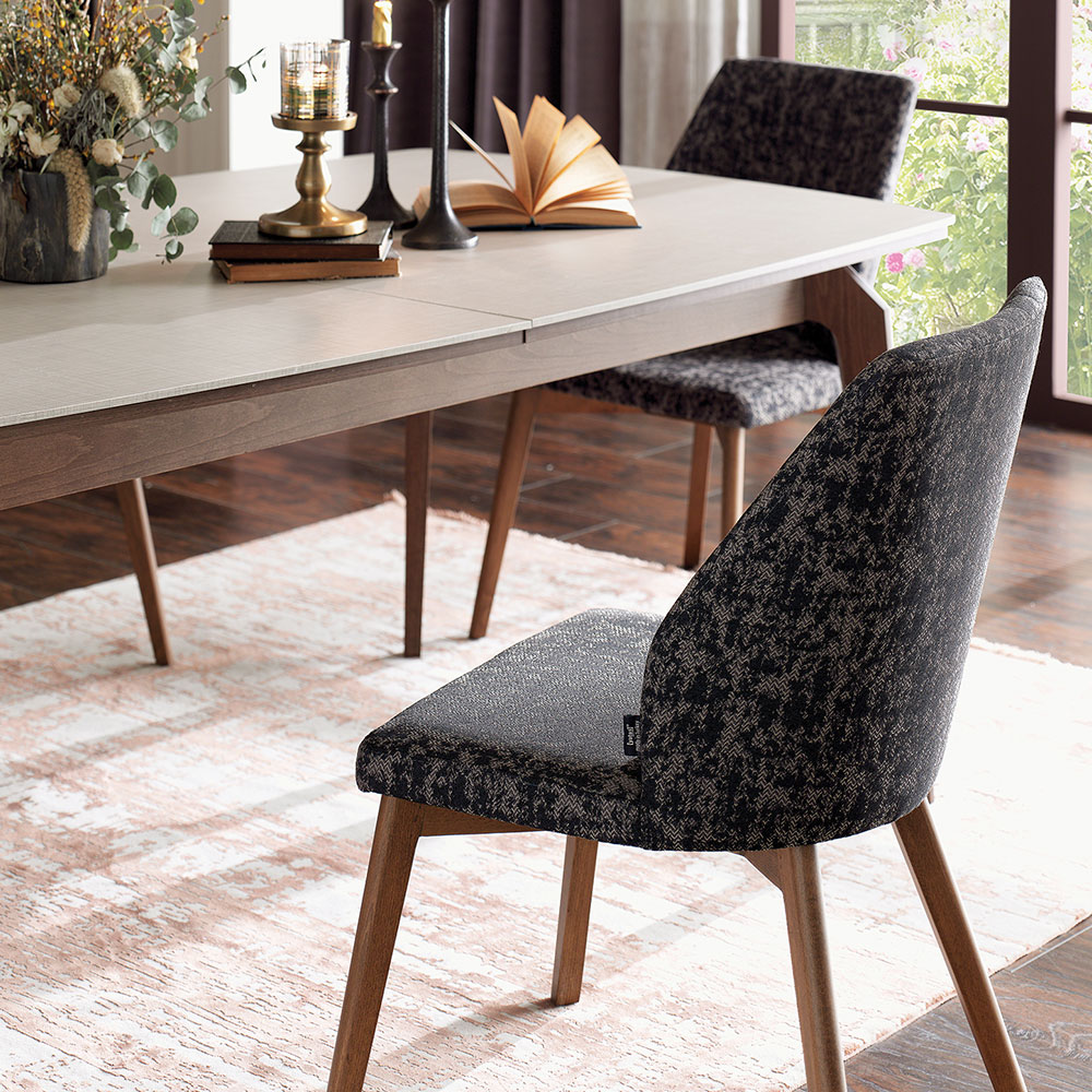 Enriching its modern style with elegant details, NETHA EXTENDABLE DINING TABLE brings a simple elegance to the living space with its linen textured fabric pattern as well as the naturalness created by its wooden appearance. NETHA EXTENDABLE DINING TABLE, the sincere and naive design that emerges with the combination of walnut color and linen textured fabric pattern surface reveals an effortless elegance.