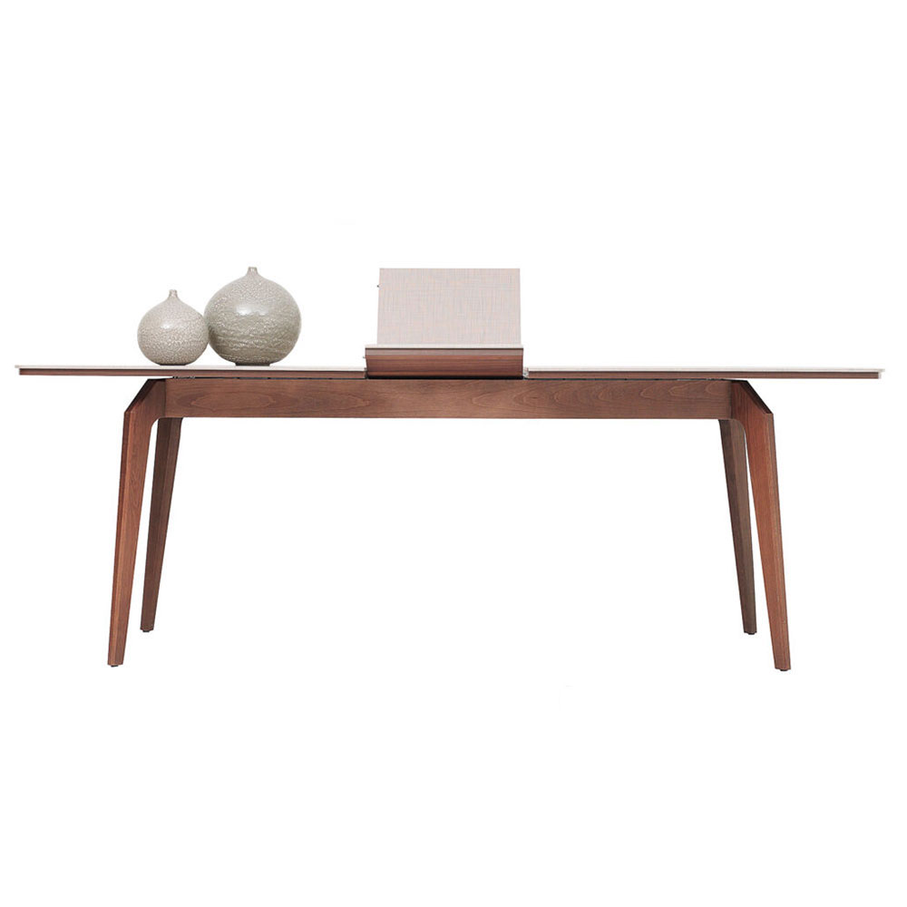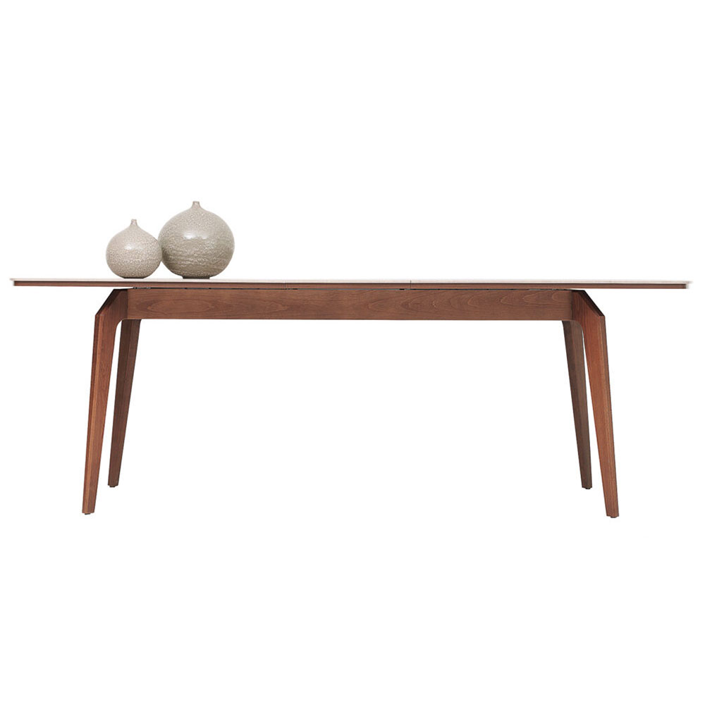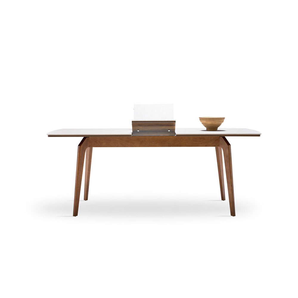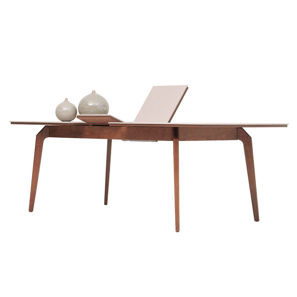 Enriching its modern style with elegant details, NETHA EXTENDABLE DINING TABLE brings a simple elegance to the living space with its linen textured fabric pattern as well as the naturalness created by its wooden appearance. NETHA EXTENDABLE DINING TABLE, the sincere and naive design that emerges with the combination of walnut color and linen textured fabric pattern surface reveals an effortless elegance.
