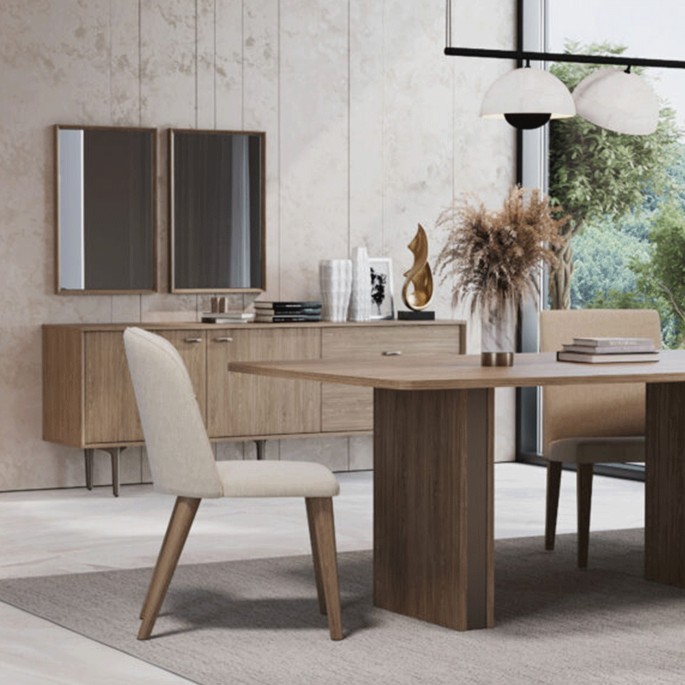 The compact and well-proportioned silhouette of both the seats and the small sofa, opens up to a new way of using the dining space.