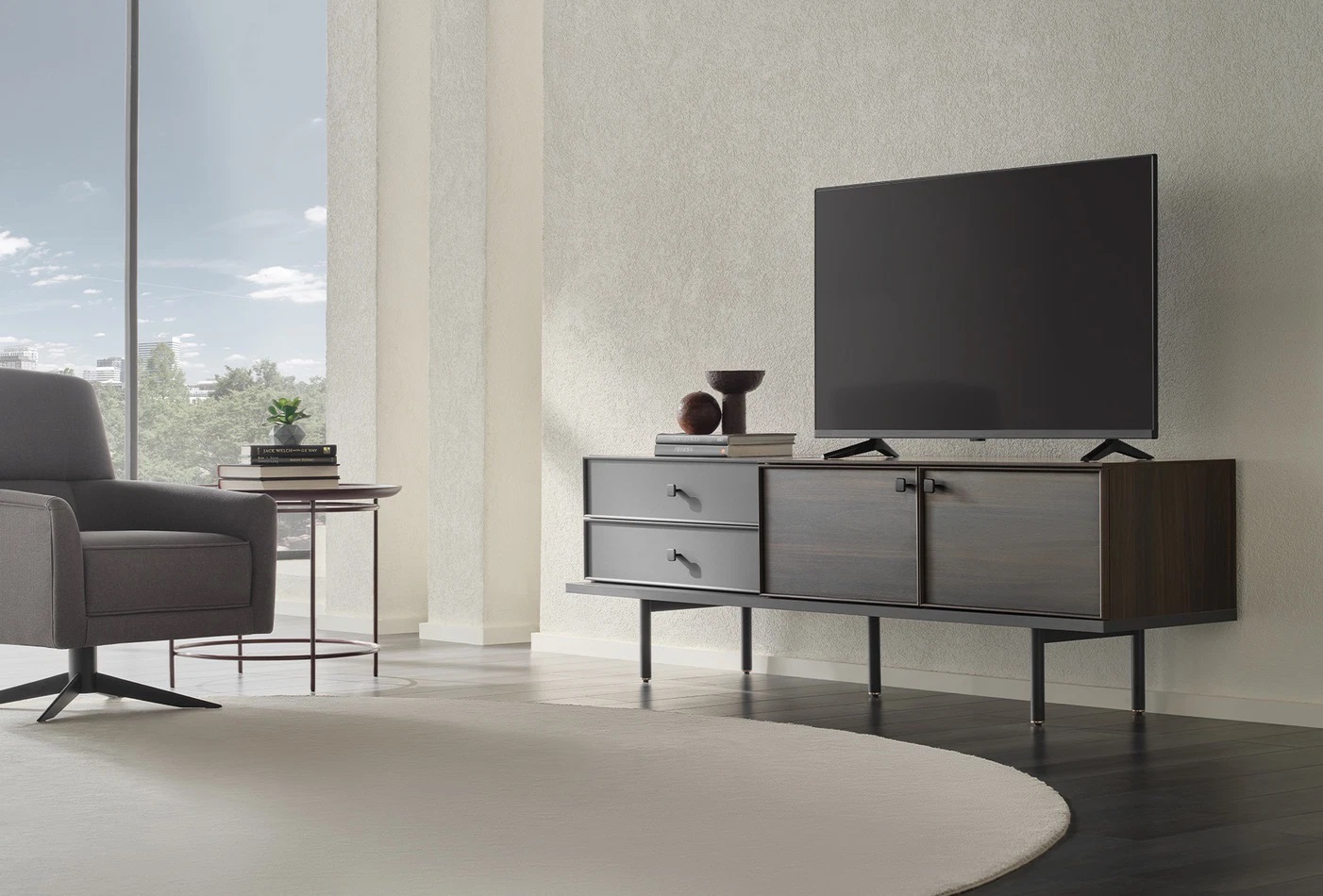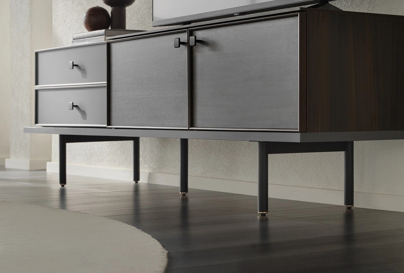 With its contemporary design and stylish details, the eye-catching PARMA TV STAND adds an original atmosphere to living spaces. The PARMA TV STAND, which provides a contemporary aesthetic with its dark walnut and black color combination, is among the main preferences of users with its meticulous design. Moreover, the PARMA TV STAND stands out as a practical and useful choice thanks to its strong design.