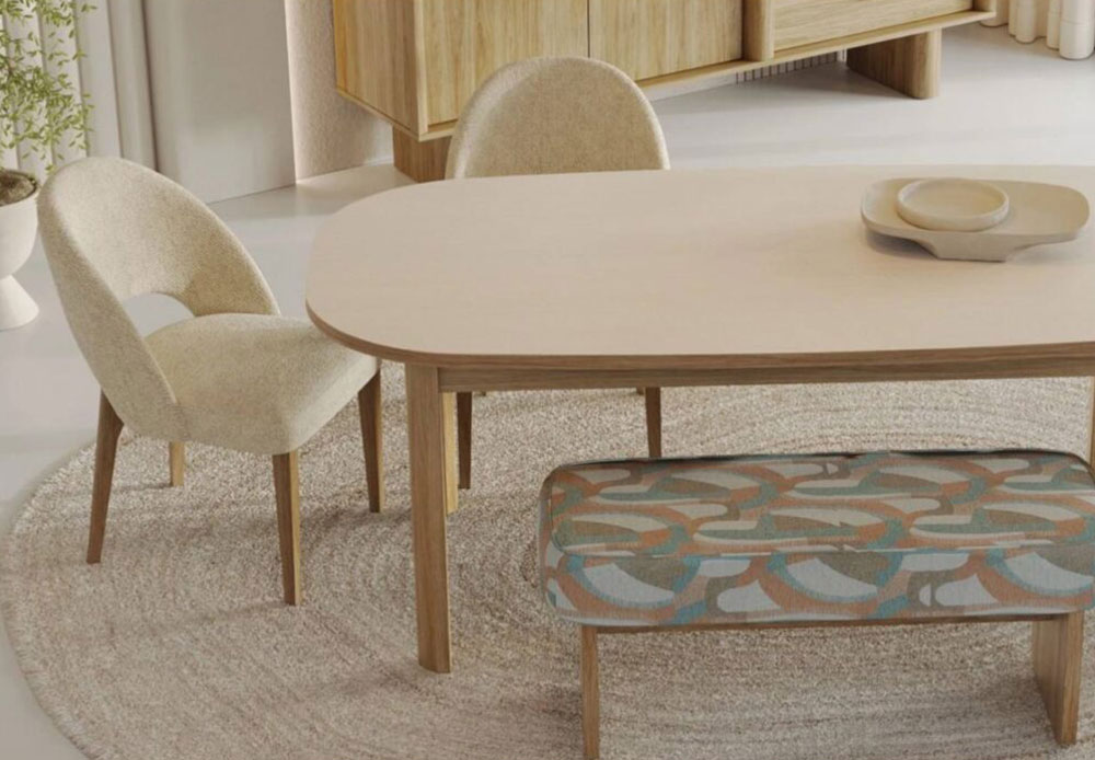 The compact and well-proportioned silhouette of both the seats and the small sofa, opens up to a new way of using the dining space.