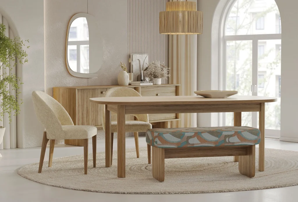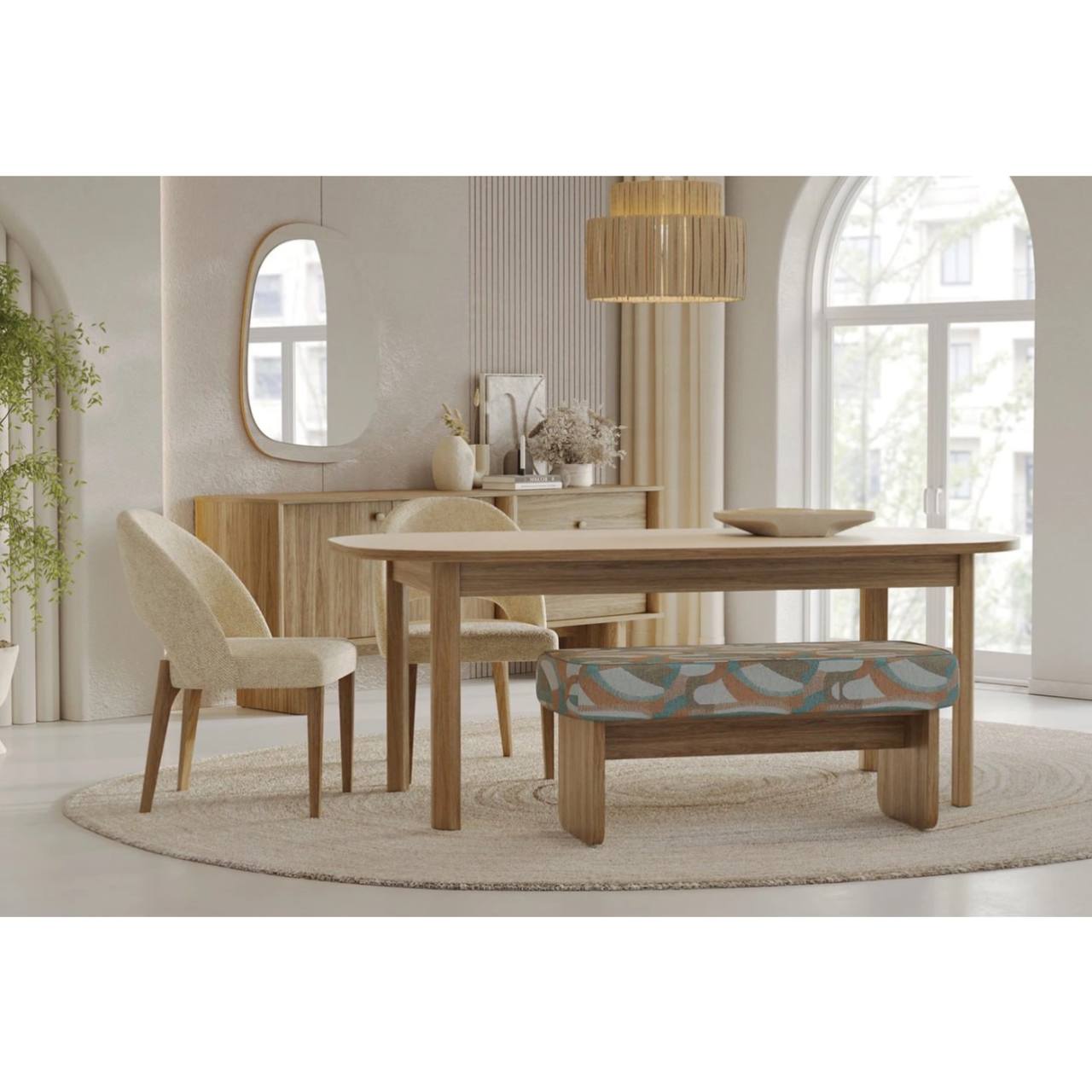 Combining natural elegance and sophisticated details, the PERGE CHAIR uniquely brings bohemian design to living spaces. It blends perfectly with the panel series, creating a powerful balance in any space. Its wooden legs blend with the natural texture of the design to create a warm atmosphere.