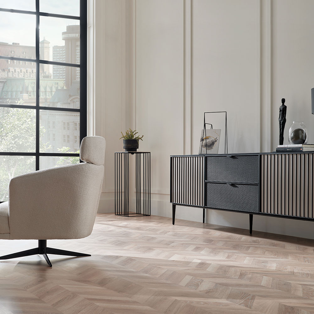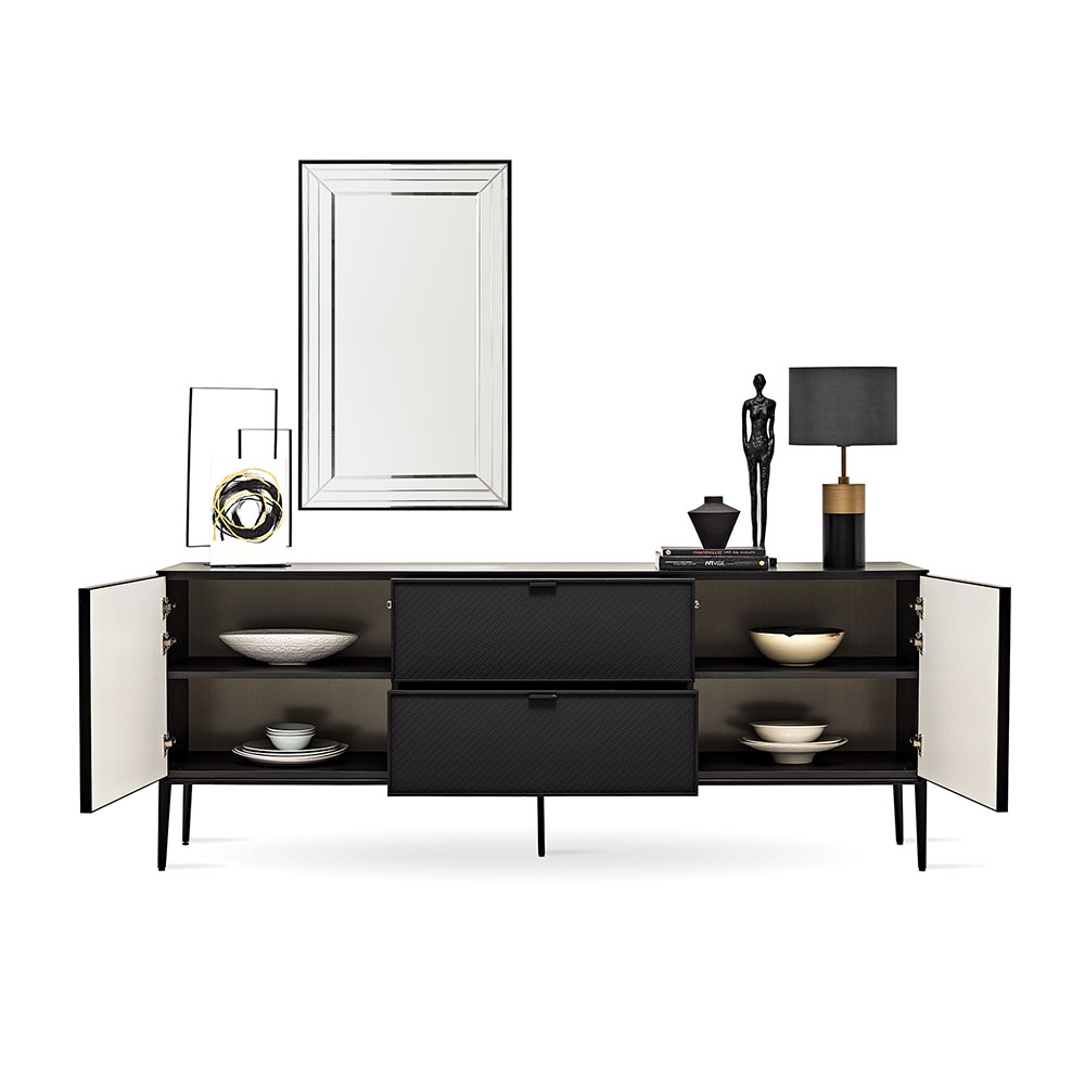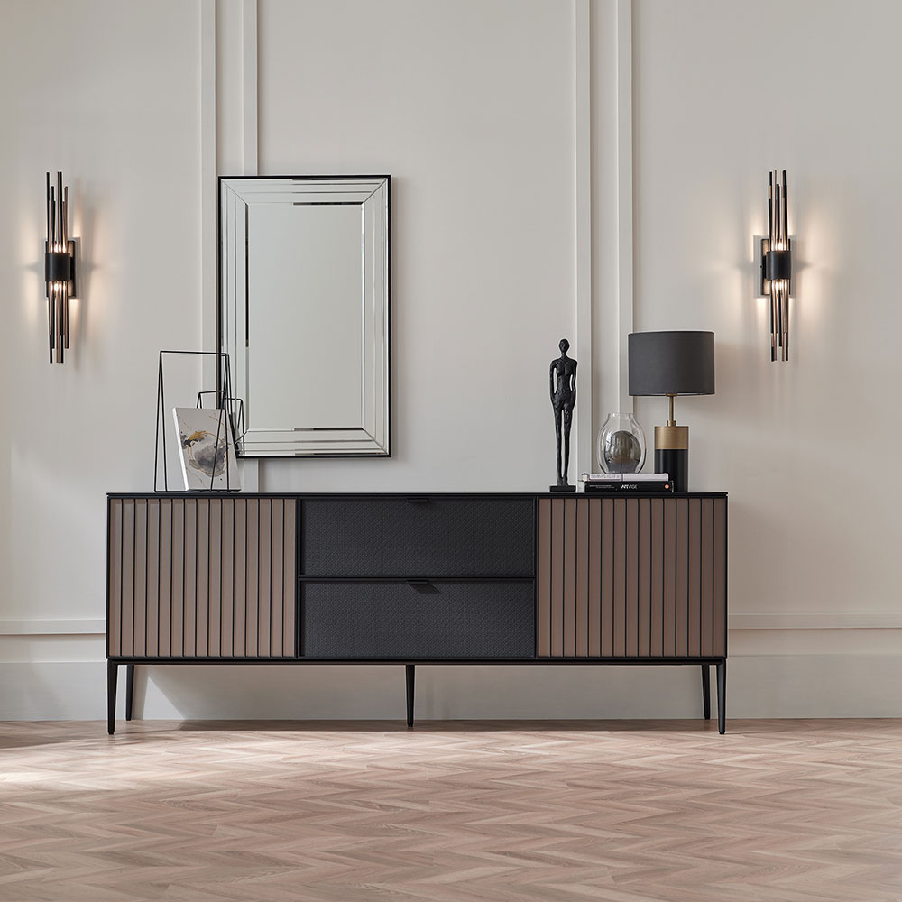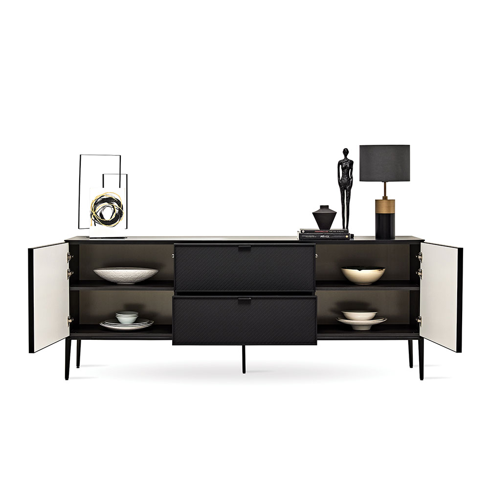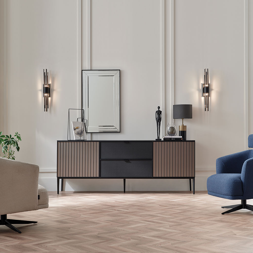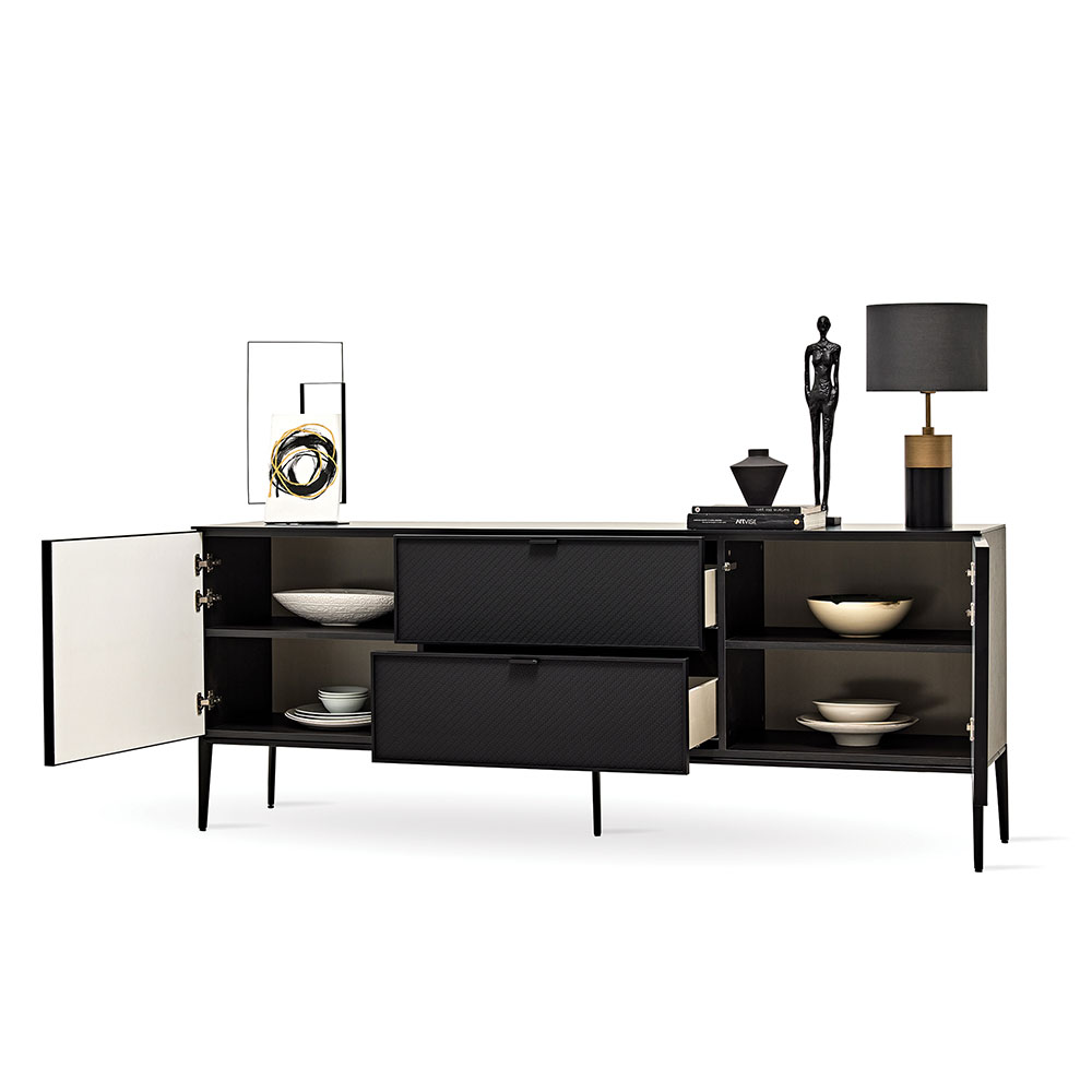 RIGA SIDEBOARD blends contrasting styles in its design to create a timeless and stylish look, thus adapting to the decoration. With its exclusive materials and elegant details, RIGA SIDEBOARD completes the pleasant atmosphere of living spaces