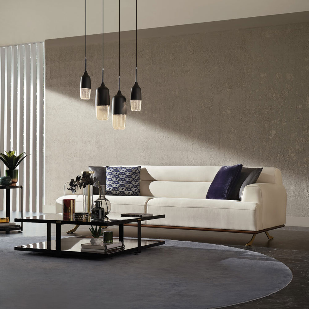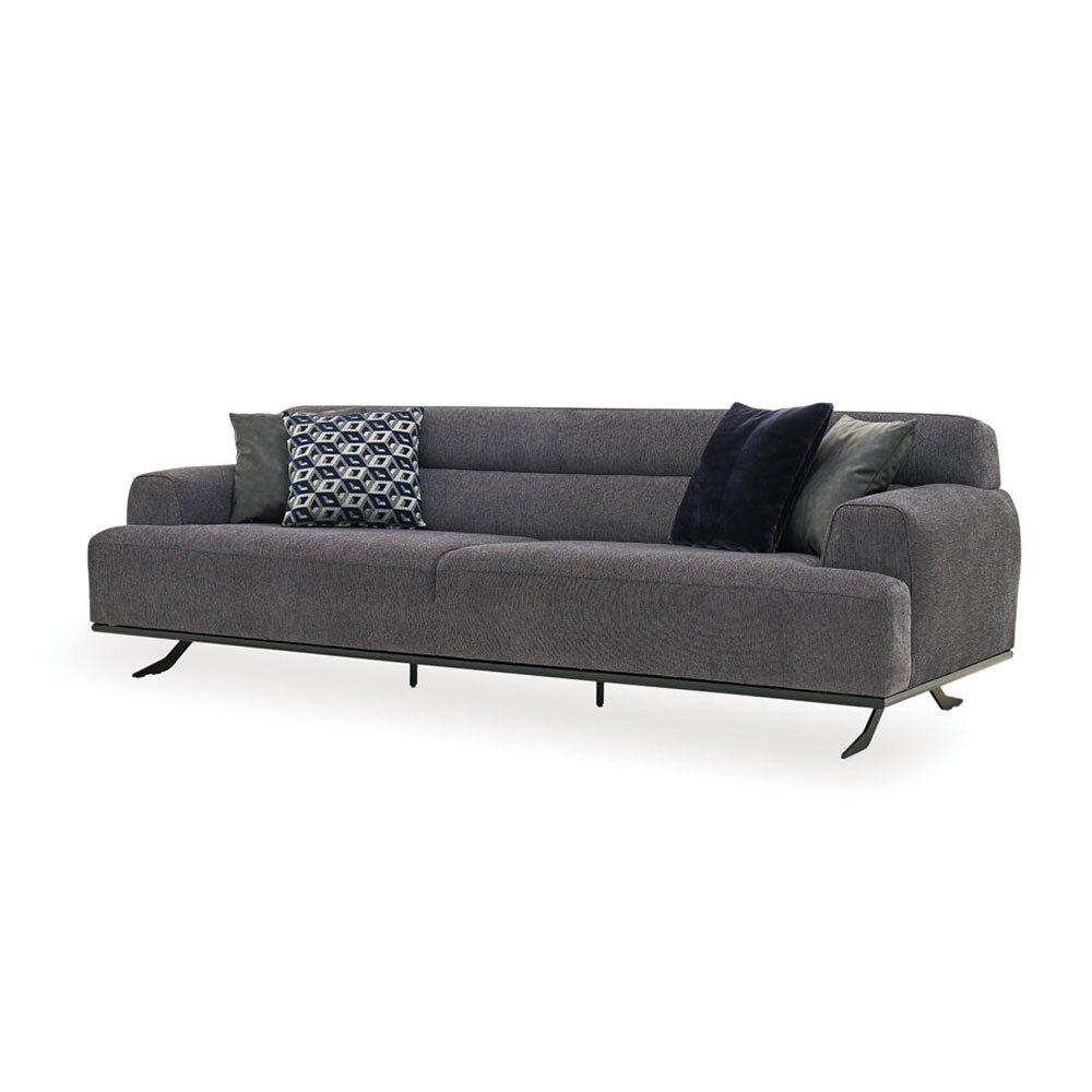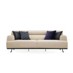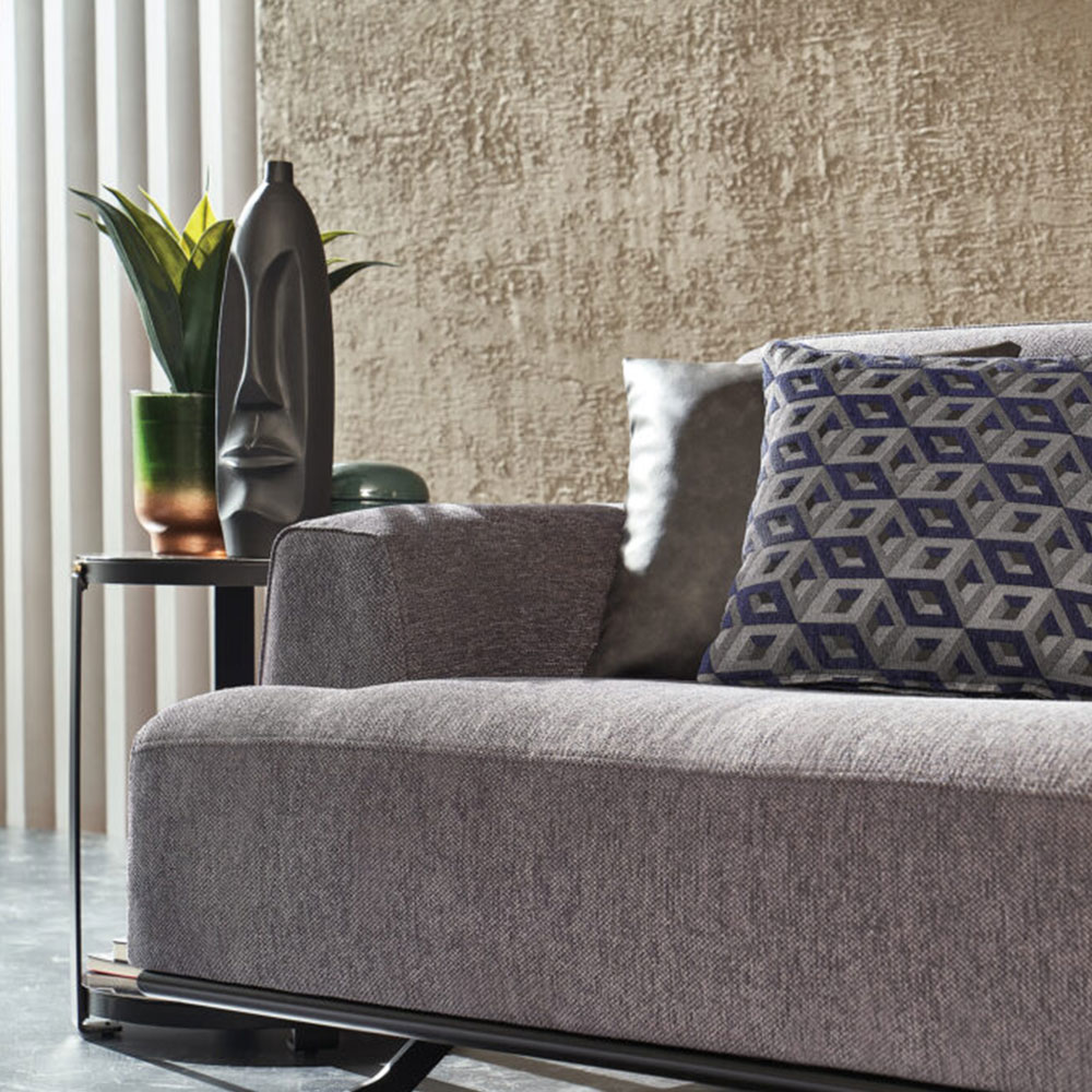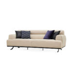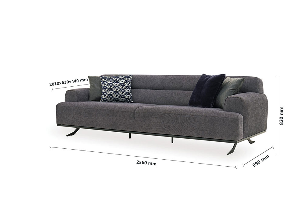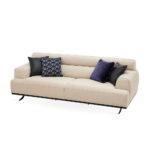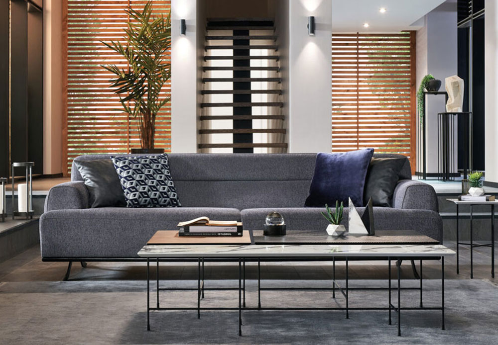 Combining the modern design line that prioritizes functionality and comfort with dynamic details, VALDERA 3-SEAT SOFA offers a stylish example of contemporary decoration. While providing maximum comfort in sitting with its multi-layered sponge technology, it creates a refined effect with its fabric texture. Representing the sustainable design concept with its metal-supported wooden construction, VALDERA 3-SEAT SOFA enriches its design with its rich cushions and two different color alternatives: black base/black leg and walnut base/gold leg.