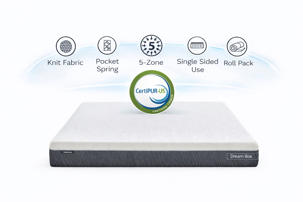 DREAM BOX LITE mattress with 5-Zoned Pocket Spring technology adapts to all body types, applies less pressure to your head-shoulder region and spinal curvature providing a unique comfort. The removable and washable cover makes it easy to keep your mattress extra clean.